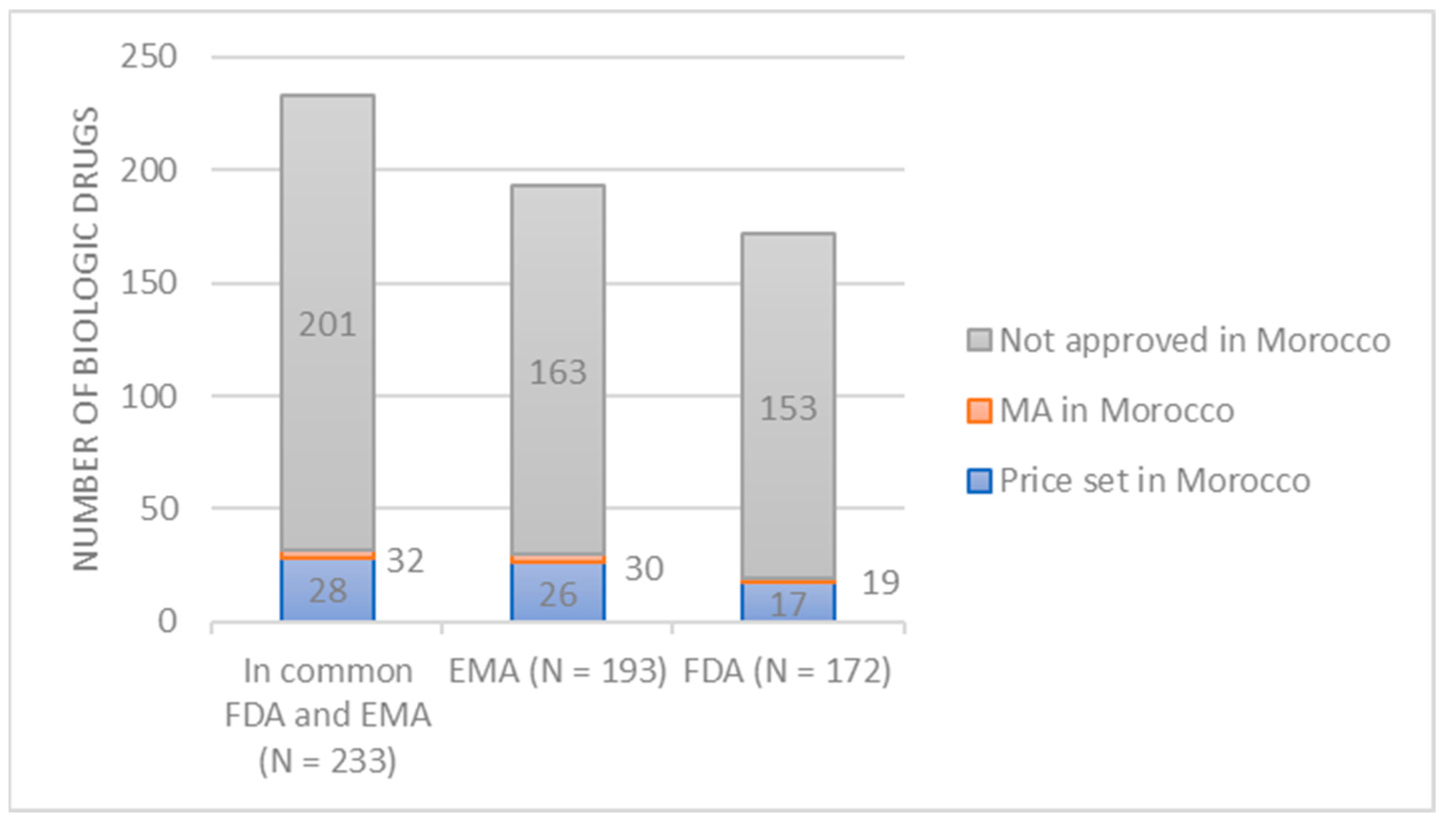 APA StyleCharrak, M., Cherrah, Y., & Serragui, S. (2026). Accessibility of Biologic Drugs in Morocco: Comparison with FDA and EMA Approvals (2015–2025). Journal of Market Access & Health Policy, 14(2), 21. https://doi.org/10.3390/jmahp14020021