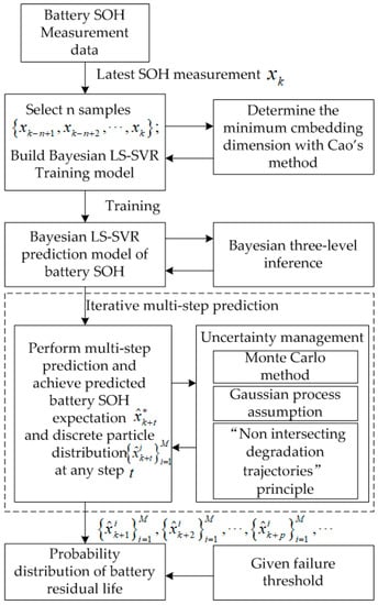 The prediction framework for the residual life of a lithium battery based on the Bayesian LS-SVR is shown in Figure 1.