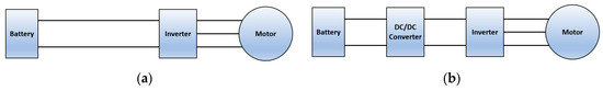 Powertrains for electric vehicles: (a) Non-chopper powertrain; (b) Series-chopper-based powertrain [7].