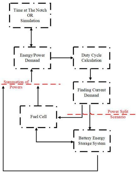 Figure 8 shows a schematic of the topology of interest in conceptualizing the powertrain based on the collected drive cycle. In the basic topology, the main power supply resource is the fuel cell.