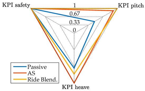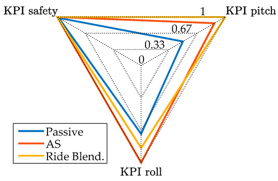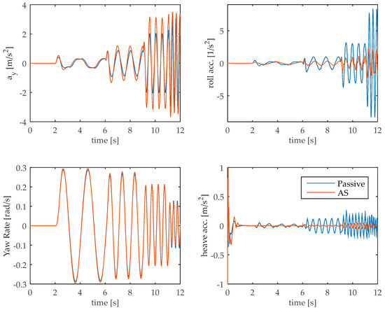 The enhanced performance is confirmed by the increased KPI in Figure 12. Such analysis supports the previous statement and confirms that the AS control increases the driving comfort. The KPI related to the pitch motion is omitted because the associated dynamics are not excited in this test.