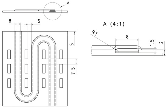 The inner channel width was defined to be 8 mm with a height of 1.5 mm. The overall thickness of the sheets was defined to 2 mm to allow pressures of approximately 20 bar.