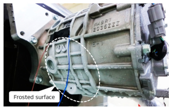 Figure 7 shows higher cooling performance of refrigerant cooling. The picture was taken after 30 min of motor operation at rated torque. The motor surface was frosted since the refrigerant temperature was set at 0 °C.