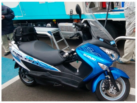 - Suzuki Fuel Cell Motorcycle. Available online: http://www.suzuki.co.jp/release/d/2016/0321/ (accessed on 8 January 2019).