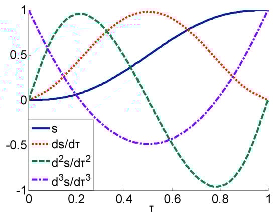 The angular velocity of the motor tracks the optimal trajectory, which falls in the field of the calculus of variations. Researchers found that a quintic polynomial has good performances during shifting. Therefore, the quintic polynomial, , could be used as the optimal trajectory during the gap mode for the angular velocity of the BLDC motor. According to the constraints of initial and terminal states, the trajectory can be calculated by shown in Figure 5, where , , , and .