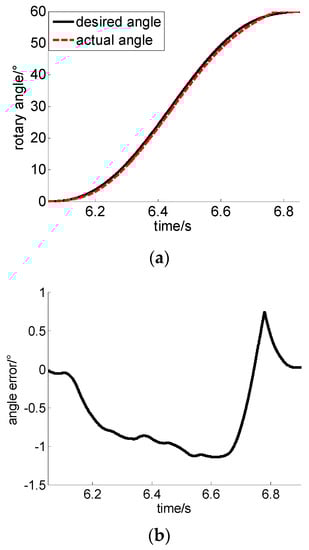 Test results of the rotary angle of the BLDC motor. (a) Rotary angle; (b) Error of rotary angle.