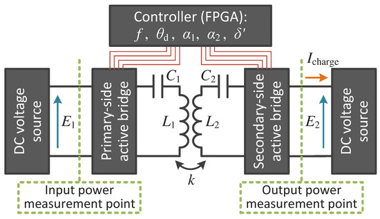 There is an adjustment method for supply and demand balance in a power system by utilizing the batteries on electric vehicles (EVs) as a part of energy storage systems [1,2,3,4,5]. In that case, these systems can be safe and maintainable by using bi-directional inductive power transfer (IPT) systems as battery chargers for EVs [1,2,6,7,8,9,10,11]. However, IPT systems have a problem in that the power loss is larger than that of wired plug-in charging systems. The large power loss causes the increase of wasteful energy consumption and the size and weight of a system. Thus, to familiarize IPT battery charging systems, it is very important to reduce the power loss. For these reasons, research related to improving the efficiency has been conducted actively.