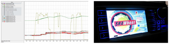 To have maximum logging and control functions, a Controller Area Network (CAN) display with bidirectional communication had been installed inside the vehicle. With this interface, it is possible to record all machine data while performing tests on the roller test bench and on the street, shown in Figure 6. Thereby, it is possible to switch between different machine control settings, and this gives a comfortable opportunity to test different control algorithms while driving on the street without the need to reprogram the switched reluctance motor control unit (SRMCU).