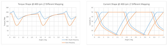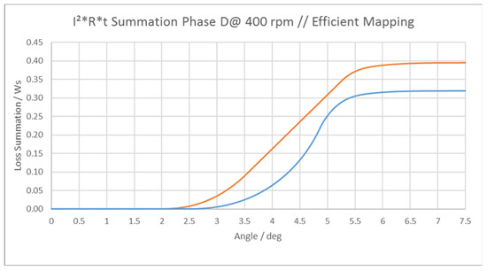 Using this freedom, the FEA calculation was used to identify the combination of the parameters for each partial load point. Figure 13 illustrates, that the same amount of torque can be produced by decreasing the time of current inside the coil but increasing the amplitude. To keep the example easy, only the copper losses are compared.