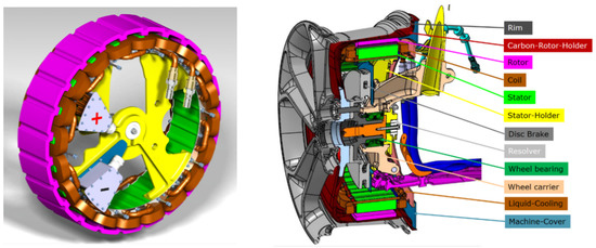- Vosswinkel, M.; Lohner, A. Design of a gearless wheel hub motor for BEV based on a switched reluctance machine. In Proceedings of the EVS30, Stuttgart, Germany, 9–11 Ocotober 2017. [Google Scholar]