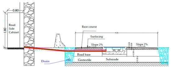 Due to the technology designed by Qualcomm, a part of the power electronic had to be close to the emitter coils. Therefore, it was necessary to have easy access to all components integrated beneath the road surface. The available space was finally set to a cavity 80 cm wide and 20 cm deep formed by a precast central trench, as can be seen in Figure 2.
