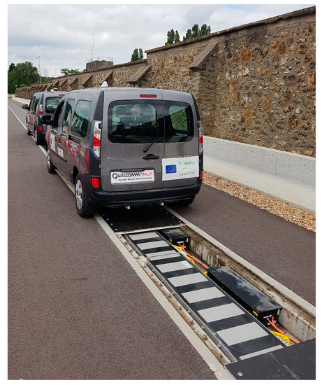 - Road integration: the previous demonstration of dynamic IPT charging on a passenger car was done in laboratory conditions [35]. This demonstration is intended in a real civil engineered road and in real climatic conditions