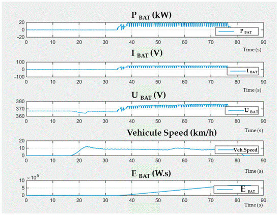 Power (PBAT) and Energy (EBAT) received by the battery were calculated and displayed on a standard graphical output designed under Matlab®.