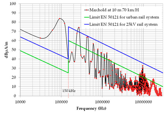 - Railway Applications—Electromagnetic Compatibility—Part 2: Emission of the Whole Railway System to the Outside World; CENELEC, EN 50121-2; International Electrotechnical Commission: Geneva, Switzerland, 2017.