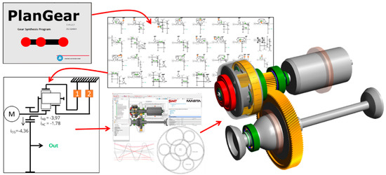 The development process is described as follows: With the help of the gear synthesis software PlanGear from ZG, different gear configurations could be elaborated on the level of stick diagrams. Out of 34 possible configurations which fulfil the drivetrain’s requirements, the four configurations with the highest efficiencies were depicted for further investigation. These configurations were then evaluated with respect to expected costs and overall size. Finally, the combination of a Ravigneaux planetary system and a pair of cylindrical gears was identified as the most promising solution. In a next step, gear and bearing dimensioning was elaborated with the use of the transmission calculation software MASTA by SMT. The shaft and bearing loads were based on highly demanding drive cycles. Figure 17 illustrates the design process of the gear and bearing configuration.