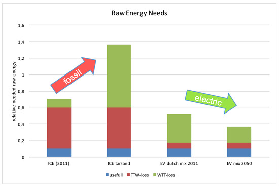 31]. Transporting the oil, refining it into petrol, diesel, or LPG, and finally, distributing the fuel takes a significant amount of energy too. And increasing energy use in the fossil chain, especially at the source, decreases the future well-to-wheel efficiency, as already shown in