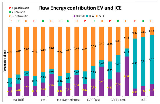 12]. Electricity from the grid does not come from one source, but as a mix. The current efforts being made to ensure that this mix contains more and more electricity from renewable sources will increase EVs’ well-to-wheel efficiency in the future.