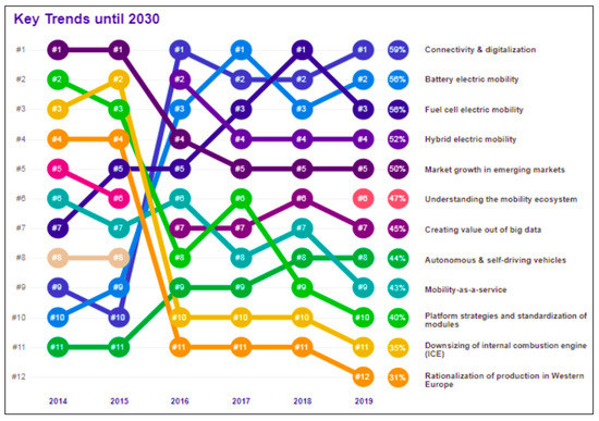 Tony Seba, Professor in Entrepreneurship, Disruption, and Clean Energy at Stanford University, was one of the first scientists to develop an automotive vision of sustainable disruptions. He points out that major disruptive transitions, such as electrification, renewable energy, automation, and the sharing economy, will completely change the ICE-based automotive industry in the coming decade. He stated, ‘only by electrification will society be able to leave the ICE age behind’ [