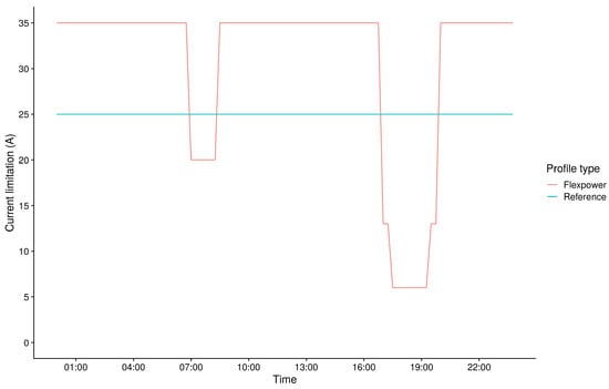 Figure 1). The profile describes how the current limitation, which is kept the same for each of the three phases, changes over the course of a day. The profile is roughly the inverse of the average consumption pattern of Dutch households which has a small peak in the morning and a large peak during the evening hours [