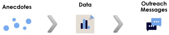 Flow diagram showing the process for moving from anecdotal information to data, which then informs more targeted outreach messages.