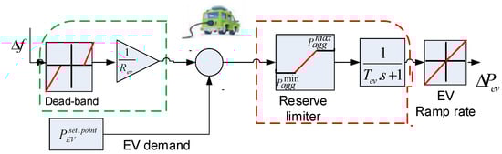 - Izadkhast, S.; Garcia-Gonzalez, P.; Frías, P. An aggregate model of plug-in electric vehicles for primary frequency control. IEEE Trans. Power Syst. 2014, 30, 1475–1482. [Google Scholar] [CrossRef]