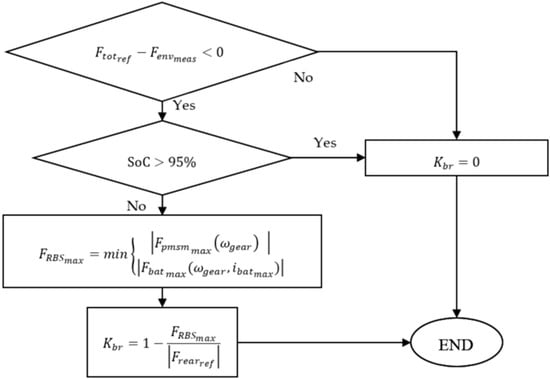 Once is estimated, is selected and used in Equation (17) to define the contribution of the RBS and the FBS to the braking force.