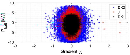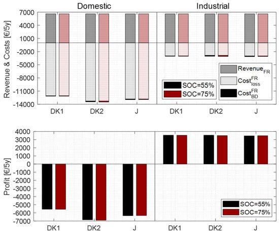 - battery capacity: the considered battery has a 40 kWh capacity. Considering the same charging/discharging power profile, larger is the battery, lower is the amount of cycles the battery is exposed to. Thus, for smaller batteries the battery degradation is expected to be a larger component of the total amount of loss. For larger batteries, which are expected in the future, the degradation can be even lower, decreasing further the degradation costs. This would also give more flexibility on the charging power that can be used during the frequency regulation provision.