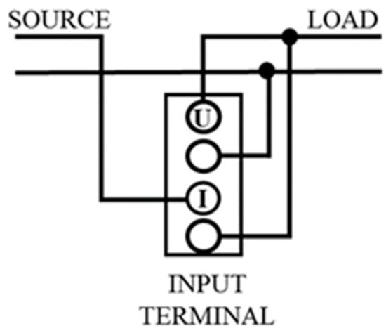 The measurement setup used in this work was a direct-input single-phase (two-wire) system. This setup can be seen in Figure 2.