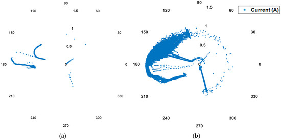 All vehicles were measured at least twice. As stated earlier, the measurements were checked for repeatability and examined so that the harmonic amplitude (up to the 11th harmonic) was lower than ±5%. Polar plots of the third current harmonic during the measurements of each vehicle can be seen in Figure 4.