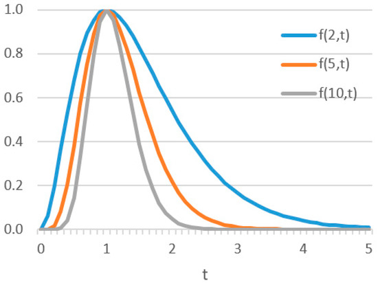 For non-negative values of t (time) and p (iterative obtained value for model fitting that could be negative), this function has a steeply rising part followed by a more slowly decaying part, exemplified in Figure 5.