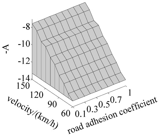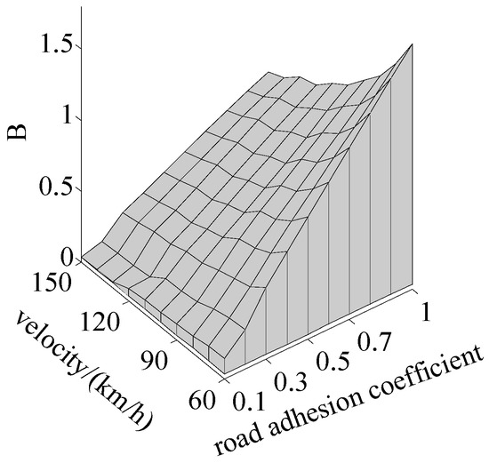 Based on the 100 groups of phase-plane diagrams drawn above, the intercepts and inclinations of 100 groups of boundary lines are obtained, and maps of the inclinations and intercepts are shown in Figure 3 and Figure 4. On the premise of considering the velocity and accuracy of simulation, the parameters of boundary lines can be determined by a two-dimensional look-up table according to the above maps and driving conditions, so as to reasonably judge the vehicle stability, based on phase planes.