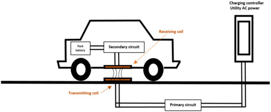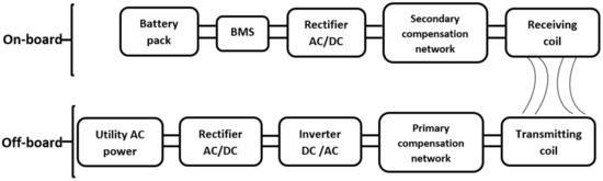 The charging system is composed of two parts: the on-board and the off-board parts. The first one is located on the vehicle, starting from the receiving coil located under the vehicle to the battery of the vehicle. The second one is located outside the vehicle, starting from the utility AC power source until the transmitting coil.