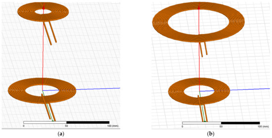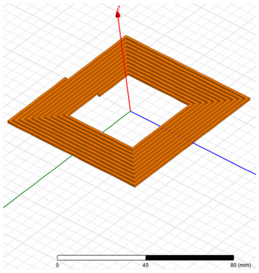 A reference rectangular model is chosen. It is modeled using Ansys Maxwell software; see Figure 5. The vertical distance between the transmitting and receiving coil depends on the vehicle type and its ground clearance. It differs from one vehicle to another.