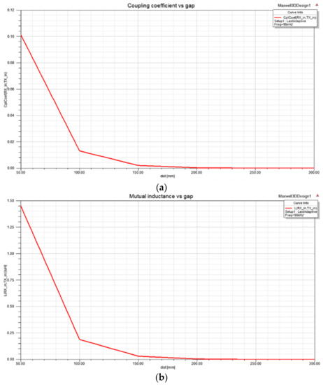 The simulation results of the coupling coefficient and the mutual inductance are summarized in Table 4 and Figure 9.
