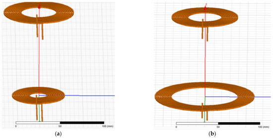 The simulation of the coreless model (Figure 6a) was carried out using Ansys Maxwell software by varying the z-distance from 50 to 300 mm.
