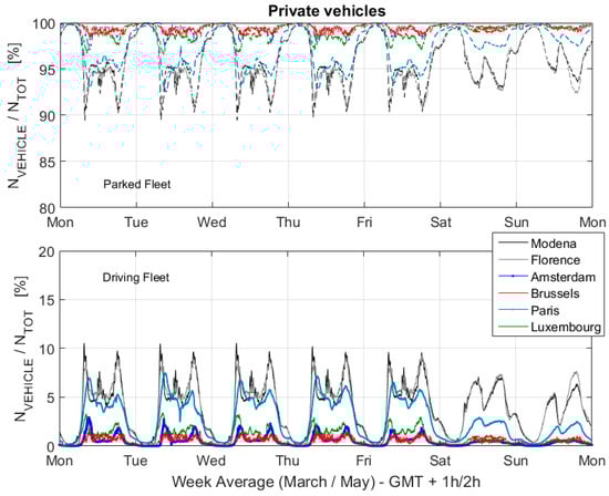 - Paffumi, E.; de Gennaro, M.; Scholz, H.; Masera, G. Assessment of the potential of electric vehicles and charging strategies to meet urban mobility requirements. Transp. Transp. Sci. 2015, 11, 22–60. [Google Scholar] [CrossRef]
