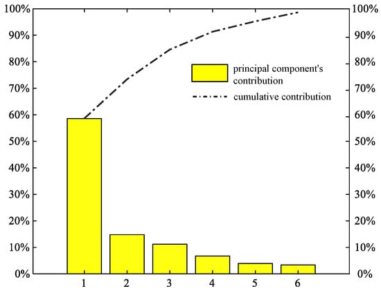In general, when the sum of the variance’s contribution of several principal component reaches up to 85%, these principal components are believed to be able to describe most of the information of the original data [21]. The results obtained by PCA are shown in Figure 5 and Figure 6.