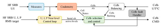 More specifically to the HF SRB management, the master controller is in charge of the optimal selection of the cells to be put in series and the others to be bypassed, and the transmission of the corresponding commands to the local controllers involved. The selection of the cells is performed according to a priority order provided by a balancing algorithm. This algorithm sorts the cell with multiple criteria—voltage, temperature, SoC, SoH, SoP, SoE and even impedance. The computing power requirement of the master controller is similar to central units of classical BMS through the use of the real time architecture described in Section 4.1. A 32-bit microcontroller of around 200 DMIPS, running at frequencies up to 200 MHz, such as the STM32F7, is sufficient. This kind of microcontroller is available for a target price as low as $2 for 10,000 units.