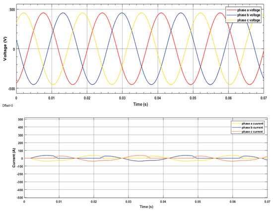 The AC feeder line voltage is set as a distribution level voltage of 220 V with a line-to-line voltage of 440 V. Transmission line parameters are taken to minimal value for the optimal operation of DERs. The consumer end is modeled by an RLC circuit having power consumption in kW with specified line inductance and capacitance. For a sustainable environment, the electrical vehicle charging module is also interfaced with the AC line through AC to DC converters. The overall system is regularized to meet the AC line load from the sustainable energy resources and using the application of ECVs to have a sustainable environment.