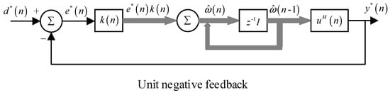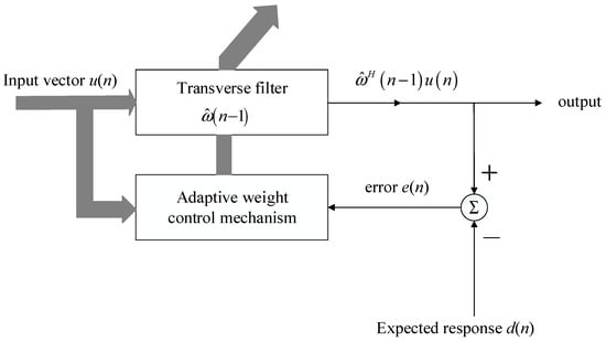 The algorithm block diagram is shown in Figure 6, and the signal flow diagram of the RLS adaptive filter is shown in Figure 7.
