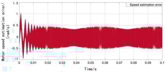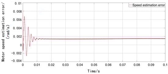 Comparing Figure 13 with Figure 14, the speed estimation error of the traditional SMO is about ±0.5 rad/s, and the speed estimation error of the new improved SMO is about 0.0015 rad/s. This proves that the new improved SMO is optimized for the accuracy of motor speed estimation.
