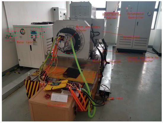 To verify the feasibility and practicability of the new improved SMO observer proposed in this paper, the new improved SMO observer was tested and verified with the aid of the experimental platform shown in Figure 21. The experiment part used the 150 kW simulation integrated equipment of Chongqing Dema Company, and the motor controller adopted the Renesas RH850 automotive-grade motor control chip that meets ISO26262 functional safety. The specific parameters of PMSM are as follows: rated voltage 350 V, rated current 120 A, rated power 25 kW, rated torque 80 Nm, rated speed 3000 rpm, peak torque 175 Nm, peak speed 9000 rpm, peak power 55 kW.