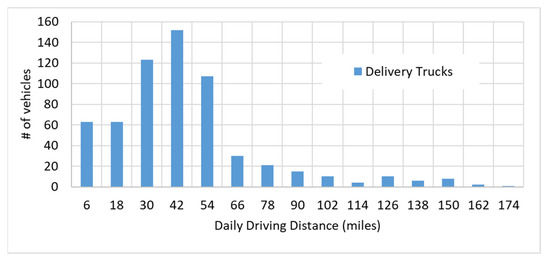 Figure 5. Distribution of daily trip distance for delivery trucks from FleetDNA.