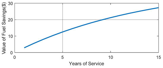 Figure 9. Present value of fuel savings over the service period of the vehicle.