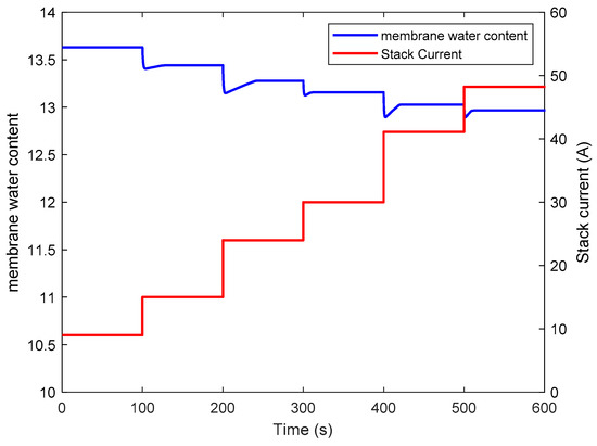 In our model, the membrane water content is represented, because it directly affects the output performance and durability of the stack. The dynamic model of is established as follows: