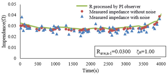 Considering the possible influence of system noise and measurement noise in practical application, a PI observer will be used to obtain the battery dynamic impedance to eliminate the influence of noise. A simple and fast calculation of dynamic impedance [27] can be defined as the change rate of voltage with the change of current. It can be expressed as: