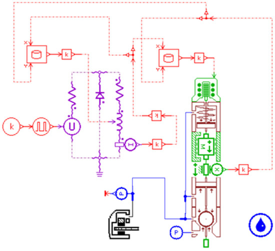 The AMESim model of the solenoid valve.
