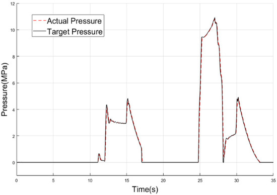 In order to verify the pressure control accuracy of the pressure control algorithm based on P-V characteristics, a random pressure following test is carried out. The simulation results are shown in Figure 16 and Figure 17.