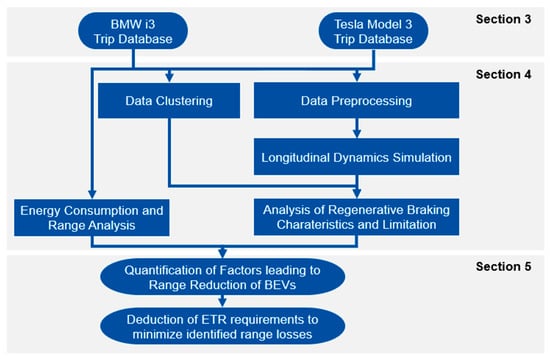 The mitigation of climate change is one of society’s greatest challenges in the 21st century [1]. With the road transportation sector accounting for more than 15% of anthropogenic CO2 emissions globally [2] (pp. 142–146), the automotive industry is set to play an important role in mastering this global task. In recent decades, emission standards for passenger cars have been introduced in the largest automotive sales markets, with the aim of reducing the carbon footprint of road transportation [3]. The rising number of electric vehicles (EVs) available on the market in recent years [4] is evidence that manufacturers are choosing to electrify their fleets in order to comply with new legal requirements. However, despite the increase in the supply of EVs, vehicle registration statistics show that electric vehicles have yet to be fully accepted by the customer [4]. In the particular case of battery electric vehicles (BEVs), the limited driving range per charge, coupled with the associated range anxiety, is one of the biggest barriers for customers today against adopting EVs [5,6,7,8,9].
