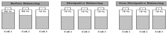 | Cell bypass | High balancing efficiency; very fast and flexible; small size; used for low power applications; easy to perform; simple to modify | High current switches; decrease battery efficiency during normal operation; generally used at the end of the charge/discharge process when effectiveness is low | Low | high/ moderate | Simple/ simple |